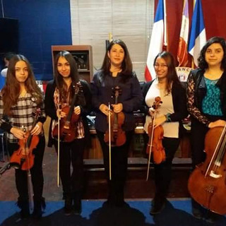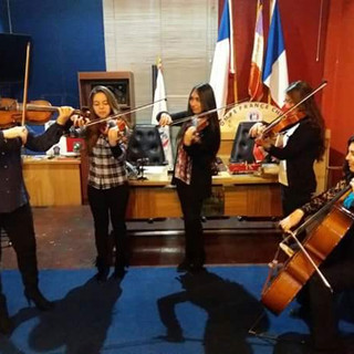 El Acto se inició, con un sentido homenaje por el atentado en Niza, realizando un minuto de silencio de los asistentes.- Luego de un a exposición de la Quinta Cía. De Bomberos y su alianza con los Bomberos de Francia. La Orquesta Stradivarius, compuesta por las alumnas avanzadas: Natalia Salazar, Valentina Vejar, Camila Venegas, Maite Fuentes y su Maestra Carmen Gloria Mella Mora, intepretaron : Pavane del compositor francés Mauricie Ravel y el tema principal de la película Los Coristas de Bruno Coulais.